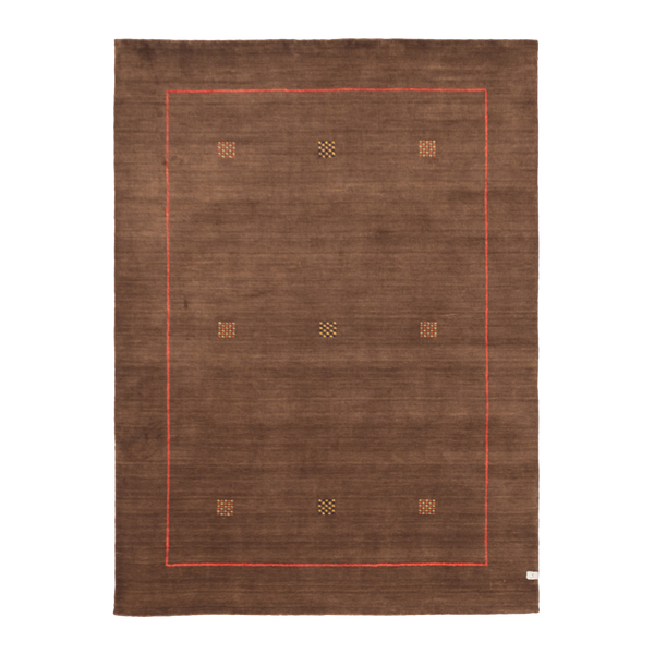 100% wool hand loomed in india, this gabbeh rug features an open‑field ground enlivened by a border and geometric accents.