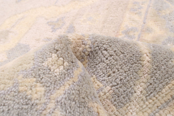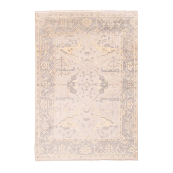 hand-knotted from 100% wool, this rug reinterprets classical oushak motifs in cool pastels and timeless patterns.