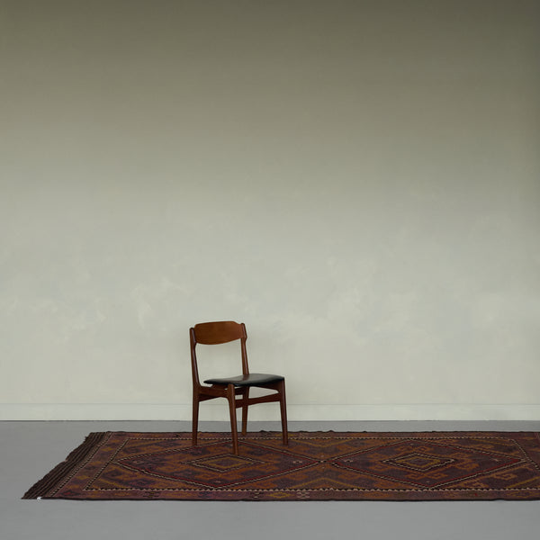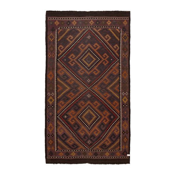 100% wool flat-woven turkish rug. defined by its geometric diamond pattern and tonal contrast, this semi-antique piece brings a sense of rhythm and heritage to modern spaces.