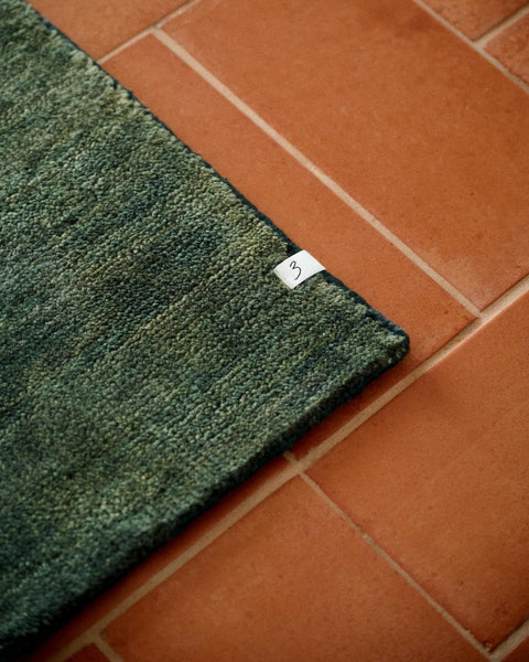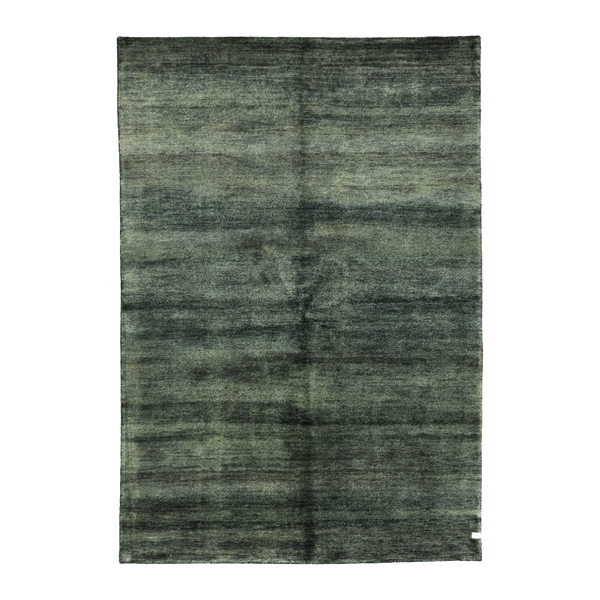 100% wool hand-knotted pakistani gabbeh rug featuring a tonal field of green with organic variations and a plush, high-pile finish.