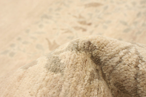 100% wool hand-knotted pakistani ziegler rug featuring a golden-wheat field with a repeating pattern of botanical panels.