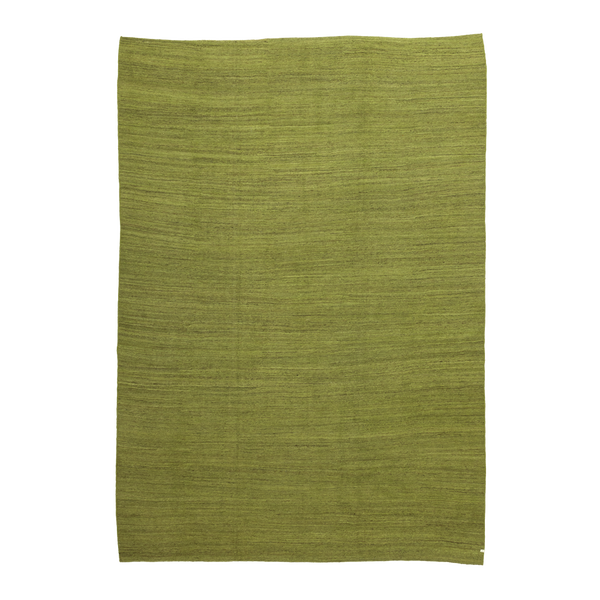 100% wool hand-woven turkish flatweave rug featuring an olive-toned field with organic variations.